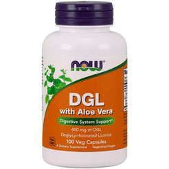 Now DGL with Aloe Vera supports digestive system. DGL, or deglycyrrhizinated licorice, is a form of licorice root that has been specially processed to remove glycyrrhizin, an undesirable compound, thereby enriching the biologically active compounds that help maintain a healthy lining in the stomach and intestines. Aloe vera has been included for its soothing properties.Recommended Use: Take 2 capsules daily, or as directed by a healthcare professional. Store in a cool, dry place after opening.