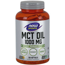 Now MCT Oil 1000mg MCTs are readily absorbed from the GI tract and are metabolized very quickly by the liver, where they encourage the use of fat for energy rather than for storage. Substituting MCT for other fats in a healthy diet help to support healthy weight and body composition. MCT oil can also be used as a substitute for conventional oils in salad dressings, sauces or cooking. Not recommended for use in frying due to low smoke point.Recommended use: Take 3 softgels up to 5 times daily with food, or as directed by a healthcare professional. Store in a cool, dry, dark place after opening.