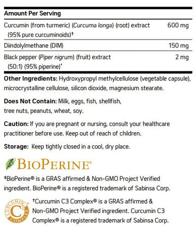 - Curcumin (from turmeric) (Curcuma longa) (root) extract (95% pure curcuminoids) 600 mg