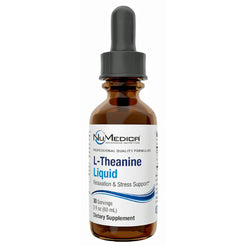 NuMedica L-Theanine Liquid Relaxation and Stress Relief, fast acting liquid. Naturally occurring, unique amino acid found in green tea leaves. NuMedica's L-Theanine is Suntheanine, the most respected source and the one which has been used in scientific studies. L-Theanine may promote a sense of relaxation without causing drowsiness. It has also been found to promote healthy cellular function and reduce feelings of stress and anxiousness. Relaxation support is enhanced by the synergistic effects of the added chamomile extract.