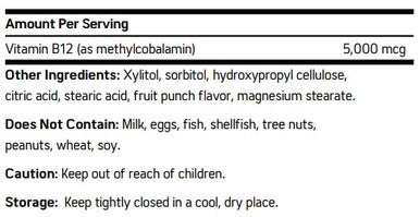 - Vitamin B12 (as methylcobalamin) 5,000 mcg