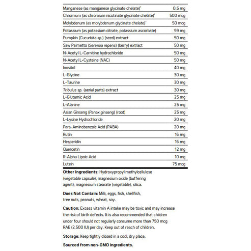 - Manganese (as manganese glycinate chelate) 0.5 mg