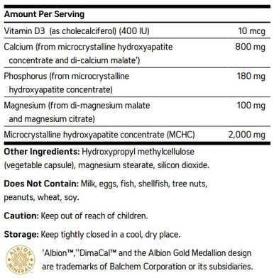 - Microcrystalline hydroxyapatite concentrate (MCHC) 2,000 mg
