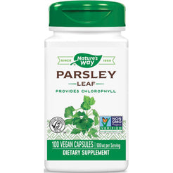 Natures Way Parsley Leaf 450mg 100c Facts:Amount-Serving %DV, Sodium10mg 1%, Parsley (leaf)900mg.