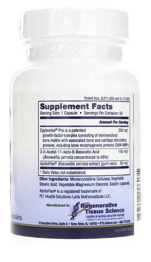 is a patented growth-factor-complex consisting of demineralized bone matrix with associated bone and cartilage stimulating proteins, including bone morphogenetic proteins (DBM_BMP) - 3-0-Acetyl-11-keto-B-Boswellic Acid (Boswellia serrata concentrated to 65%) 150 mg