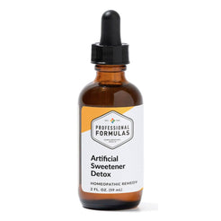 Professional Formulas Artificial Sweetener Detox offers homeopathic support in the detoxification of artificial sweeteners. For the temporary relief of occasional headache, bloating, nausea or vomiting, diarrhea, difficulty breathing, cough, runny nose, skin irritation, itchy eyes, or irritability due to sensitivity to or exposure to artificial sweeteners.