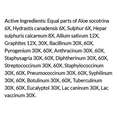 Professional Formulas Bacterial Immune Stimulator offers homeopathic support for balancing of the body's anti-bacterial immune system. Temporarily reduces occasional mild abdominal pain or discomfort, nausea, headache, fatigue, runny nose, chills, or cough.