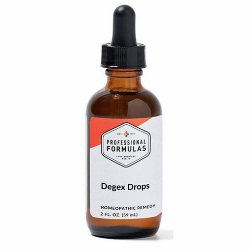 Professional Formulas Degex Drops offers homeopathic support to stimulate the cellular defense mechanisms as well as metabolic catalyzation. For the temporary relief of lethargy, fatigue, weakness, minor aches or pains in muscles or joints, or dry, itchy skin.