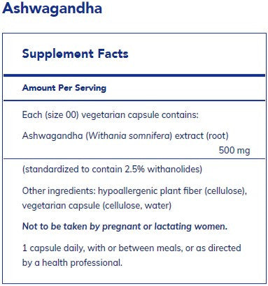 Pure Encapsulations Ashwagandha is an adaptogenic herb with a 4,000-year history of traditional use in Ayurveda. This 120-capsule supplement supports stress resilience, cognitive function, memory, immune health, and joint comfort. Formulated with hypoallergenic, vegan ingredients, it delivers withanolides—the herb's key active compounds—to promote overall physical and mental wellness.