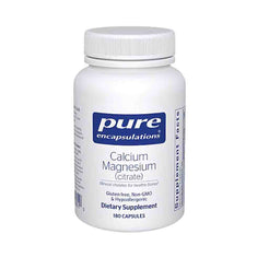 Pure Encapsulations Calcium Magnesium Citrate delivers two essential minerals in highly absorbable citrate forms to support bone density and cardiovascular function. Calcium strengthens skeletal structure and supports muscle contraction and immune response, while magnesium promotes healthy bone metabolism and maintains cellular electrolyte balance. This synergistic combination helps reduce osteoporosis risk and supports heart health. Formulated with hypoallergenic, vegan ingredients for optimal bioavailability.