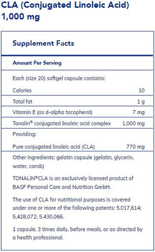 Pure Encapsulations CLA delivers 1,000 mg of safflower oil complex per serving, providing 770 mg of conjugated linoleic acid—a naturally occurring fatty acid studied for supporting healthy body composition. This hypoallergenic formula contains the clinically relevant isomers c9,t11 and t10,c12, which research suggests may help maintain lean mass when paired with proper diet and exercise. CLA supports circulation and cardiovascular function while promoting metabolic efficiency.