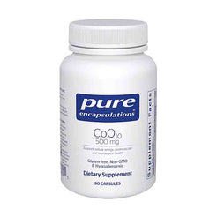 Pure Encapsulations CoQ10 500mg supports heart health, energy production, and cardiovascular function. Each capsule delivers 500mg of naturally fermented CoQ10, which plays a vital role in ATP synthesis—the body's primary energy molecule. This supports cellular energy, exercise endurance, and heart muscle performance. Formulated with hypoallergenic, vegetarian ingredients for optimal bioavailability and tolerability.