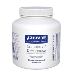 Pure Encapsulations Cranberry-D-Mannose combines cranberry extract from 100% fruit solids with d-mannose to support urinary tract and bladder health. Cranberry works by maintaining a healthy bladder wall and preventing bacteria from adhering to urinary tract cells, while d-mannose provides additional concentrated support for genitourinary function. This formula delivers dual-action benefits without the excess sugar found in cranberry juice. Hypoallergenic and vegan, it's especially beneficial for women seeking natural urinary tract comfort and support.