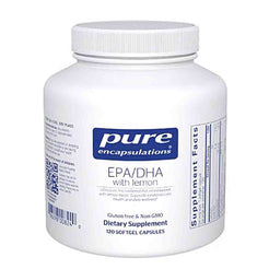 Pure Encapsulations EPA/DHA with lemon supports cardiovascular health, maintains healthy blood flow, joints, tissue health, and vascular health. Provides pure, microfiltered fish oil concentrate for cardiovascular and joint health. Molecularly distilled and microfiltered. They are sourced mainly from sardines and anchovies off the coast of Chile or Norway. They have been tested for contaminants including heavy metals, dioxans and furans, PCBs, peroxides and anisidine.