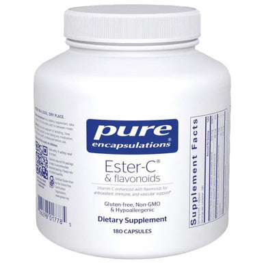 Pure Encapsulations Ester-C & Flavonoids combines a highly absorbable form of vitamin C with plant-derived flavonoids to support immune function and vascular health. This formula delivers antioxidant protection against free radicals while promoting overall wellness. Crafted with hypoallergenic, vegan ingredients, it offers a convenient way to supplement what your diet may lack.