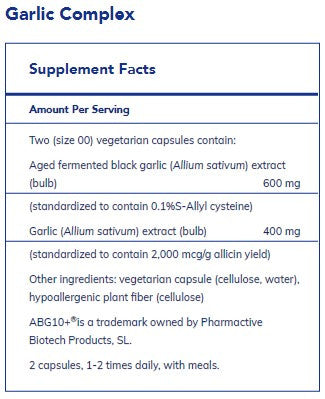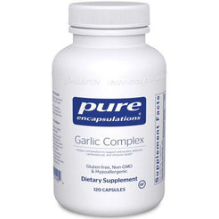 Pure Encapsulations Garlic Complex delivers a synergistic blend of garlic extract and aged fermented black garlic extract, formulated to support your body's antioxidant defense systems and promote cardiovascular wellness. This 120-capsule formula combines the bioactive compounds found in fresh garlic with the enhanced stability and potency of fermented black garlic, which undergoes a natural aging process that increases its beneficial polyphenol content. The dual-extract approach provides comprehensive support for immune function while maintaining gastrointestinal tolerability.
