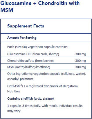 Pure Encapsulations Glucosamine + Chondroitin with MSM Facts: