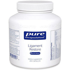 Pure Encapsulations Ligament Restore offers support for tendons, ligaments and joints. Suffering from pain or discomfort in your joints‚ tendons‚ or ligaments can be tough. Whether its due to normal wear and tear or as a result of a sprain or strain‚ it can distract and inconvenience you during your everyday life‚ or even lead to other health problems by preventing you from exercising regularly. Fortunately‚ Pure Encapsulations Ligament Restore provides a variety of ingredients (like vitamins‚ herbs‚ and amino acids) that may help you feel better‚ in a naturally occurring blend of hyaluronic acid (HA)‚ chondroitin sulfate‚ and more. One of the main components is glucosamine sulfate derived from shrimp and crab‚ which serves as a building block for connective tissues. Not only does glucosamine support the building of tissues‚ but it also contributes to maintaining and repairing existing tissues by working to protect your cartilage from mechanical stress. Silica from bamboo stem extract and fat-soluble vitamin C also work as cofactors that help form and repair the connective tissue matrix. In addition‚ Ligament Restore also contains BioCell Collagen‚ a hydrolyzed collagen complex derived from chicken sternal cartilage‚ which can help synthesize cartilage and the functioning of your joints. L–lysine and l–proline also serves as the "glue" that holds collagen together. Finally‚ natural herbs like devils claw extract and turmeric extract may reduce inflammation in the joint tissues‚ promote increased flexibility‚ and maintain the healthy metabolism of eicosanoids.Recommended use: 2 capsules, 2 times daily, with 8-10 oz water, with meals, or as directed by a healthcare professioanl. Individual results may vary.