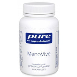 Pure Encapsulations MenoVive supports female health and comfort during menopause. Helps to moderate occadional hot flashes, support emotional well-being, sexual funtion, cognitive function, and cardiovascular health.Recommended Use: 1 capsule, twice daily, with meals, or as directed by a healthcare professional.