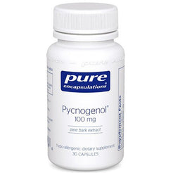Pure Encapsulations Pycnogenol 100mg offers support for the heart. Pycnogenol may supply your body with potentially beneficial pycnogenol‚ an extract from a pine tree known as pinus maritime. This atented antioxidant complex produced from pine bark that can possibly improve cellular health. It contains proanthocyanidins‚ which are bioflavonoids that can potentially reduce cellular damage caused by harmful free radicals. These are molecules and toxins that are the product of your environment as well as regular metabolic processes.Recommended use: 1 capsule, 1-2 times daily, between meals, or as directed by a healthcare professional.