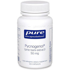 Pure Encapsulations Pycnogenol 50mg offers support for the heart. Pycnogenol may supply your body with potentially beneficial pycnogenol‚ an extract from a pine tree known as pinus maritime. This atented antioxidant complex produced from pine bark that can possibly improve cellular health. It contains proanthocyanidins‚ which are bioflavonoids that can potentially reduce cellular damage caused by harmful free radicals. These are molecules and toxins that are the product of your environment as well as regular metabolic processes.Recommended use: 1 capsule, 1-3 times daily, between meals, or as directed by a healthcare professional.