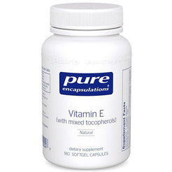 Pure Encapsulations Vitamin E with mixed tocopherols Supports antioxidant protection, cellular function, and cardiovascular health. Vitamin E is beneficial in the cellular respiration of muscles, especially cardiac and skeletal muscles. It also supports platelet function and blood vessel health. Supports nucleic acid and protein metabolism, mitochondrial function, and hormone production.*Recommended Use: 1 capsule daily, with a meal, or as directed by a healthcare professional.