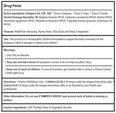 Progena Allergena GTW (Zone 5) For Kids offers homeopathic relief from discomfort caused by grasses, trees, and weeds for the eyes, nose, and sinus.
