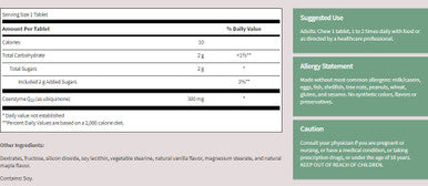 Klaire-SFI Chewable Coenzyme Q10 300 mg Facts:1 tablet contains: