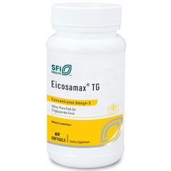 Klaire-SFI Eicosamax TG 60 is a premium supplement providing highly concentrated triglyceride-form omega-3 EPA and DHA, derived from purified fish oil. It supports cardiovascular health, joint function, and cognitive well-being, while promoting a balanced inflammatory response. Eicosamax TG ensures exceptional purity with independent testing for mercury, pesticides, and PCBs. Added mixed tocopherols help preserve freshness by protecting against oxidation.