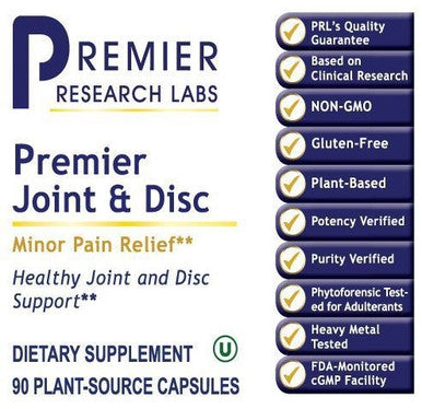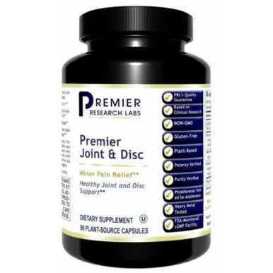 Premier Research Labs Premier Joint & Disc supports joint health, disc health, mobility, healthy cartilage, sports recovery, and relief of occasional minor pain due to normal joint wear and tear.