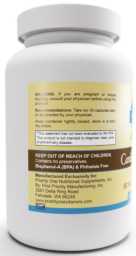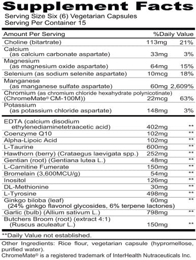 Priority One Cardio Chelation Facts:6 vegetarian capsules contain: