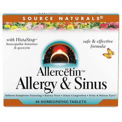 Source Naturals Allercetin Allergy & Sinus is a homeopathic formula that is used for relief of hay fever and pollen allergic symptoms of sneezing, runny nose, itchy and watery eyes, plugged ears, sinus congestion, and headache. Allercetin can be taken any time during hay fever season, even before symptoms begin.