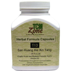 Tcm Zone Coptis Scute and Rhubarb Formula T13C Facts: Rhubarb (Da huang) 15.00g, Scutellaria Root (Huang qin) 7.50g, Coptis Rhizome (Huang lian) 7.50g. Also contains: dextrin.