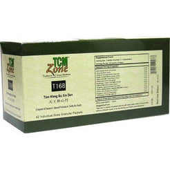 Emperor of Heavens Special Formula to Tonify Heart T168G contains Rehmannia Root, Ginseng, Chinese Senega Root, Radix Scrophulariae, Biota orientalis seed, Platycodon Root, Asparagus Tuber, Salvia miltiorrhiza, Zizyphus spinosa, Mai Men Dong, Hoelen, Angelica sinensis, and Schisandra fruit.