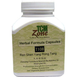 Tcm Zone Ginseng Formula to Nourish Nutritive Qi T108C Facts: Ginseng (Ren shen) 2.27 g, Astragalus Root (Huang qi) 2.27 g, Atractylodes Rhizome (Bai zhu) 2.27 g, Hoelen 1.82 g, Angelica sinensis 2.27 g, Cinnamon Bark 2.27 g, Rehmannia Root (Shu di huang) 1.82g, Peony Root (Shao yao) 3.64g, Chinese Senega Root (Yuan Zhi) 1.36g, Schisandra Fruit (Wu Wei Zi) 1.82g, Jujube (Da zao) 0.91g, Ginger (Sheng jiang) 2.73g, Honey-Fried Licorice (Zhi Gan cao) 2.27g, Tangerine Peel (Chen pi) 2.27g.