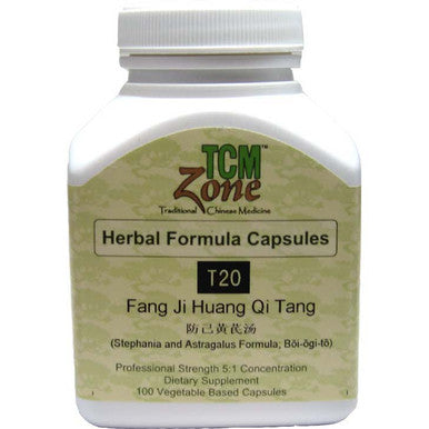 Tcm Zone Stephania And Astragalus Formula T20C Facts: Sinomenium Stem (Han fang ji) 7.35 g, Astragalus Root (Huang qi) 7.35g, Atractylodes Rhizome (Bau zhu) 5.51g, Jujube (Da zao) 1.22g, Licorice (Gan cao) 3.67g, Ginger (Gan jiang) 4.90g. Also contains: dextrin.