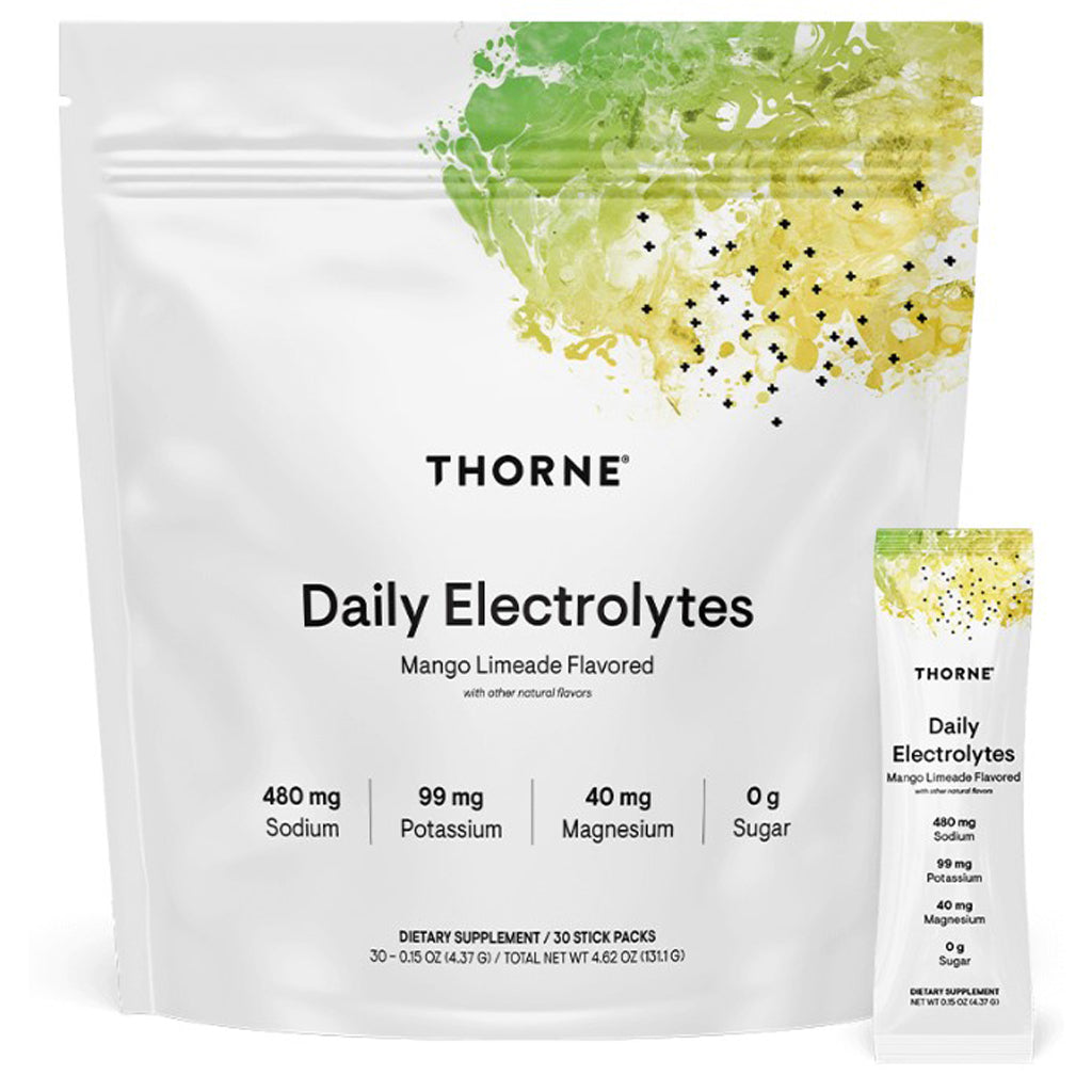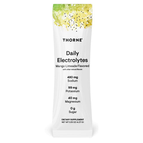 Thorne Daily Electrolytes – Mango Limeade: Hydration goes beyond just drinking water—it’s about restoring the essential electrolytes that power your body. Thorne’s Daily Electrolytes provide a precise blend of sodium, potassium, magnesium, calcium, and chloride to optimize hydration, support muscle performance, and enhance recovery. Designed for athletes, active individuals, and anyone needing a hydration boost, this formula improves fluid balance without excess sugar or artificial additives.