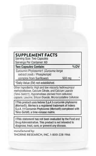 Thorne Curcumin Phytosome (formerly Meriva) Facts:2 capsules contain: