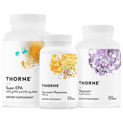 Thorne Thyroid Health Stack supports healthy thyroid function, and helps regulate thyroid hormones. The thyroid gland plays a crucial role in influencing almost every organ in the body. It oversees the pace at which our cells operate, from the heartbeat rate to the digestion speed in our intestines. Any disruption in the balance of thyroid hormones can negatively affect the body. Thorne's Thyroid Health kit comprises of three supplements designed to support and preserve optimal thyroid function.