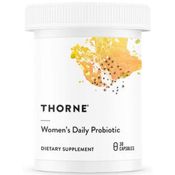 Thorne Women's Daily Probiotic supports a healhty microbial population in the vaginal and urinary tracts, probiotic support for discharge and odor associated with vaginal bacterial imbalance, helps balance unwanted yeast growth such as Candida, promotes a healthy vaginal pH, and provides nutritional support for women who experience frequent urinary tract infections. Overall benefits of Women's Daily Probiotic use supports immune health, cardiovascular health, metabolic health, microflora population in the gut, women undergoin antibiotic treatment, healthy skin, and microbial balance in the gut for those who experience GI upset or bloating.