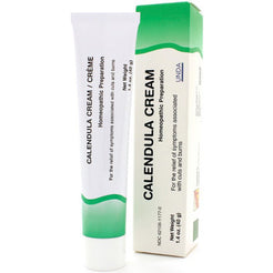 Calendula Cream contains calendula officinalis, rosae extracta, lanolin, and glycerinum to support wound healing, bruises, dry skin, superficial wounds, diaper rash, irritated nipples, sunburns, minor burns, fissures, ulcers, and sores. Recommended use is to gently rub cream into affected area thrice daily till symptoms disappear or as recommended by your healthcare professional.