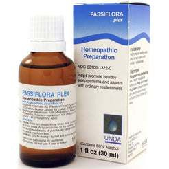 UNDA Passiflora Plex Facts: Passiflora incarnata (Passionflower) 3 X, Ignatia iamara (St. Ignatius Bean) 8 X, Exogenium purga (Jalapa) 8 X, Coffea cruda (Unroasted Coffee) 10 X, Magnesium 10 X, Palladium metallicum (Palladium) 10 X, Tellurium metallicum (Tellurium metal) 10 X, Phosphoricum acidum (Phosphoric Acid) 14 X.