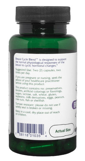 Vitanica Breast Cycle Blend contains antioxidants and nutrients including high lignan flaxseed, green tea, vitamins, minerals, Coenzyme Q10, and calcium D-glucarate to maintain and promote healthy breast tissue.