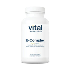 Vital Nutrients B-Complex  supports a healthy nervous system, a tonifier in times of mild stress and fatigue, maintains healthy protein, fat, and carbohydrate metabolism, and promotes the conversion of homocysteine. B Complex is used in the metabolism of protein and fats, maintains muscle tone in the GI tract, and helps to convert carbohydrates into energy. Also supports healthy nerve cells, promote the conversion of homocysteine thus supporting heart health.