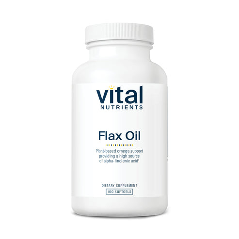 Vital Nutrients Flax Oil High concentration of Alpha Linolenic Acid (ALA), supports cartilage, joint function, and promotes healthy platelet aggregation levels. Also supports cholesterol levels already in the normal range.