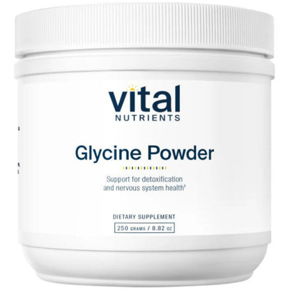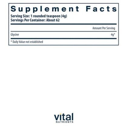 Vital Nutrients Glycine Powder An amino acid found in protein food sources to maintain a healthy nervous system, alleviate mild memory changes associated with aging, and supports healthy neural development.