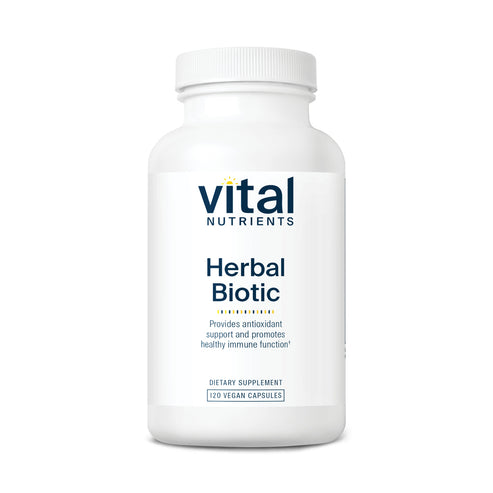 Vital Nutrients Herbal Biotic is a potent blend of botanicals formulated to strengthen the immune system, support upper respiratory and sinus health, and provide powerful antioxidant protection. This expertly crafted supplement promotes healthy antibody production and helps defend against seasonal and environmental stressors, ensuring optimal immune function and overall wellness.