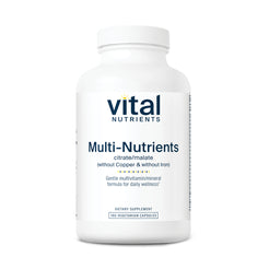 Vital Nutrients Multi-Nutrients Citrate/Malate (without Copper & without Iron) A high potency multi-vitamin/mineral and trace element that provides the highest nutritional value for all systems of the body. Contains mineral in citrate/malate form for better absorption. Does Not contain copper or iron. Well tolerated by most individuals.