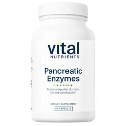 Vital Nutrients Pancreatic Enzymes 90c Supports healthy digestion by supplying natural enzymes that are secreted by the pancreas. Promotes digestion of protein, fats and carbohydrates and nutrient absorption.