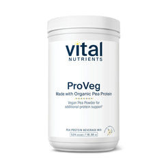 Vital Nutrients ProVeg Oraganic Pea Protein An organic pea protein powder that provides protein and comprehensive amino acid profile. Contains no added sugar or artificial sweeteners, and is free of soy, gluten, dairy, and GMOs. Can be mixed with water, non-dairy milk, juice, or added to a smoothie.